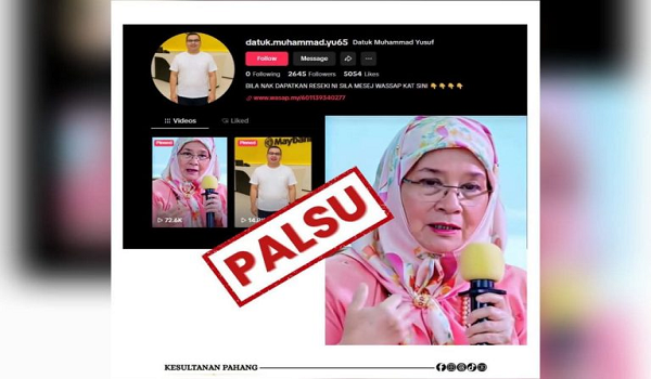 “Istana Pahang menegaskan bahawa perbuatan tersebut adalah cubaan penipuan yang tidak bertanggungjawab dan boleh menjejaskan imej institusi diraja.