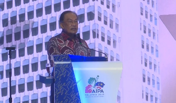 Anwar Ibrahim pada Majlis Pembukaan Perhimpunan Agung Antara Parlimen ASEAN ke-46 (AIPA GA) 2025 di WTCKL hari ini/RTM