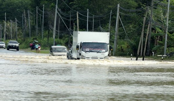 Beberapa kenderaan dilihat mengharungi air yang melimpahi jalanraya Kibabaig Penampang berikutan hujan lebat berlaku di daerah Penapang dan beberapa kawasan di Sabah,baru-baru ini. /BERNAMA
