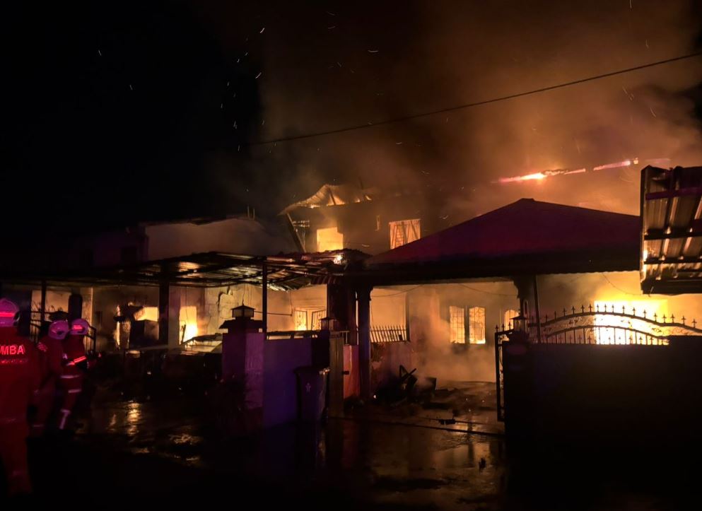 PADAWAN,25 September - Dua rumah jenis Semi-D musnah dijilat api dalam satu kebakaran berantai di Taman Landeh,dekat sini,semalam.