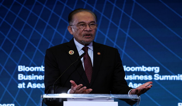 Perdana Menteri,Datuk Seri Anwar Ibrahim ketika berucap pada Majlis Makan Malam Pembukaan Sidang Kemuncak Perniagaan Bloomberg,yang diadakan di luar Sidang Kemuncak ASEAN ke-47 di Kuala Lumpur,malam tadi/ BERNAMA