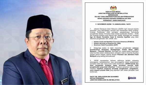Dr Sirajuddin berkata,ketiga-tiga badan tersebut mendapat pengiktirafan sebelum termeterainya Perjanjian Perdagangan Timbal Balas Malaysia–Amerika Syarikat (ART) dan kekal komited melaksanakan pensijilan halal mengikut Piawaian dan Standard Halal Malaysia yang berkuat kuasa.