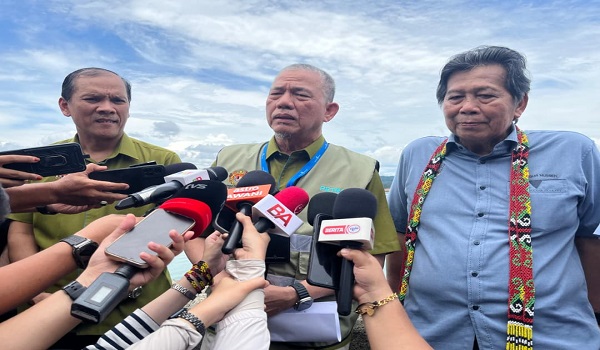 Datuk Seri Fadillah Yusof (tengah) ditemui media selepas lawatan kerja ke Empangan Batang Ai,Lubok Antu sempena program Skuad Kementerian Peralihan Tenaga dan Transformasi Air (PETRA) Zon Sarawak